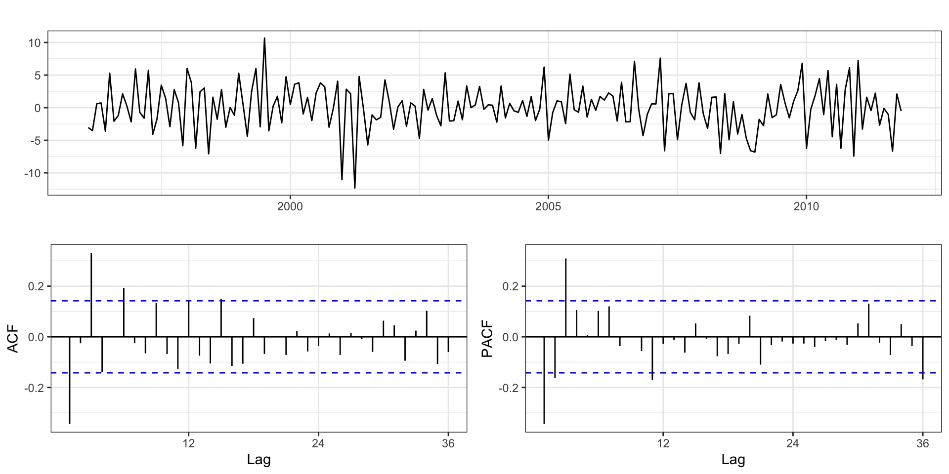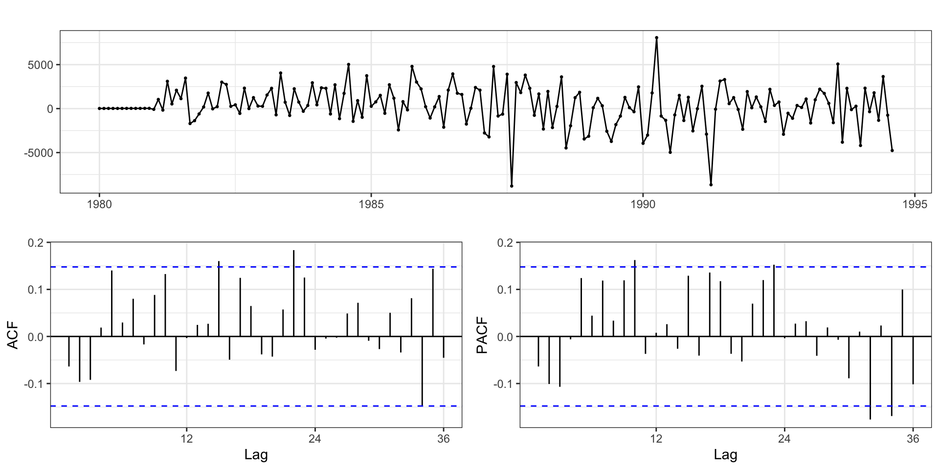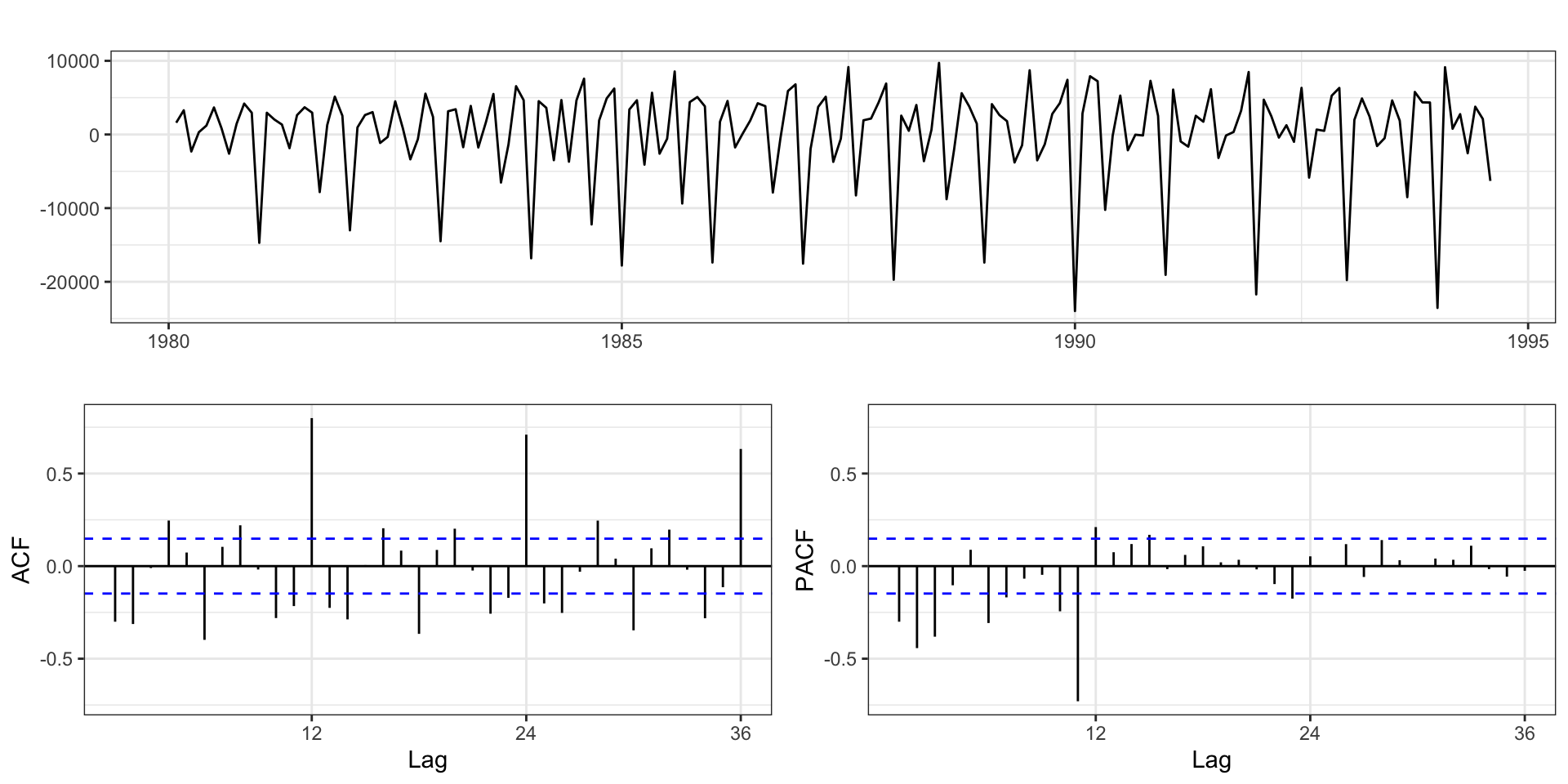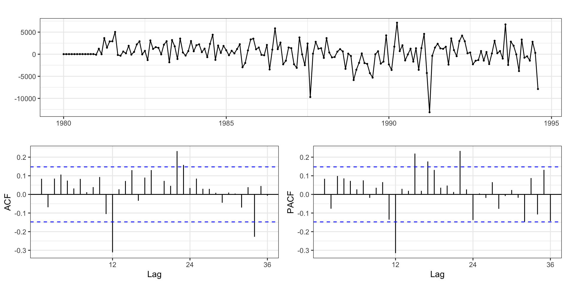 \(\text{ARIMA}(0,0,0) \times (0,1,1)_{12}\):