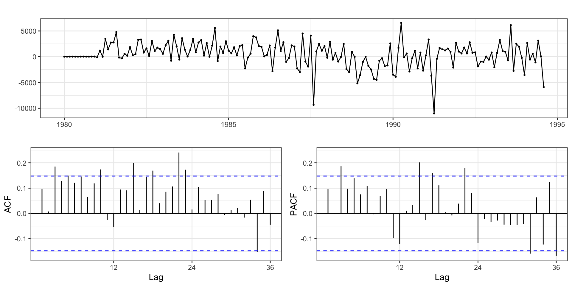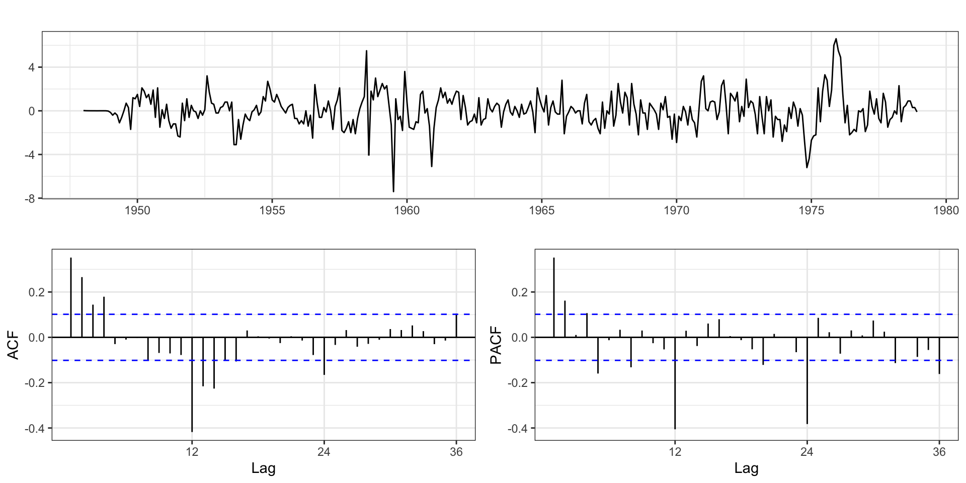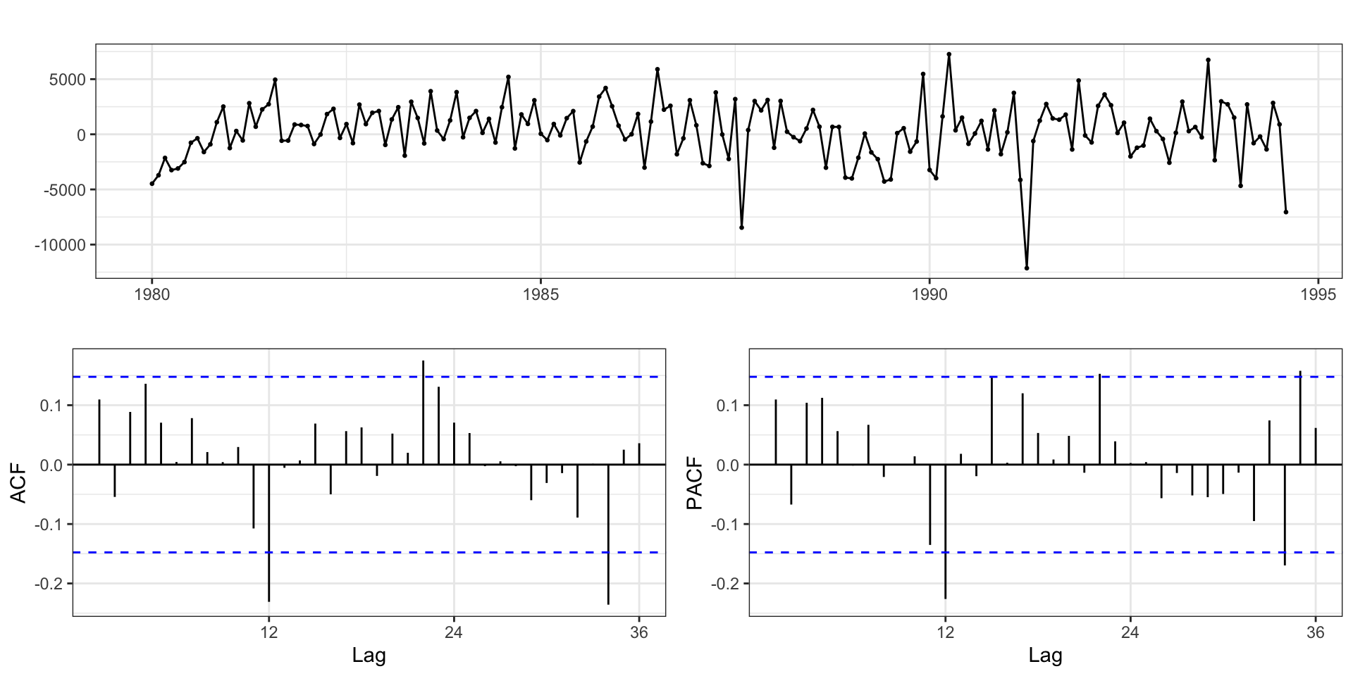 \(\text{ARIMA}(0,0,0) \times (0,1,1)_{12}\):