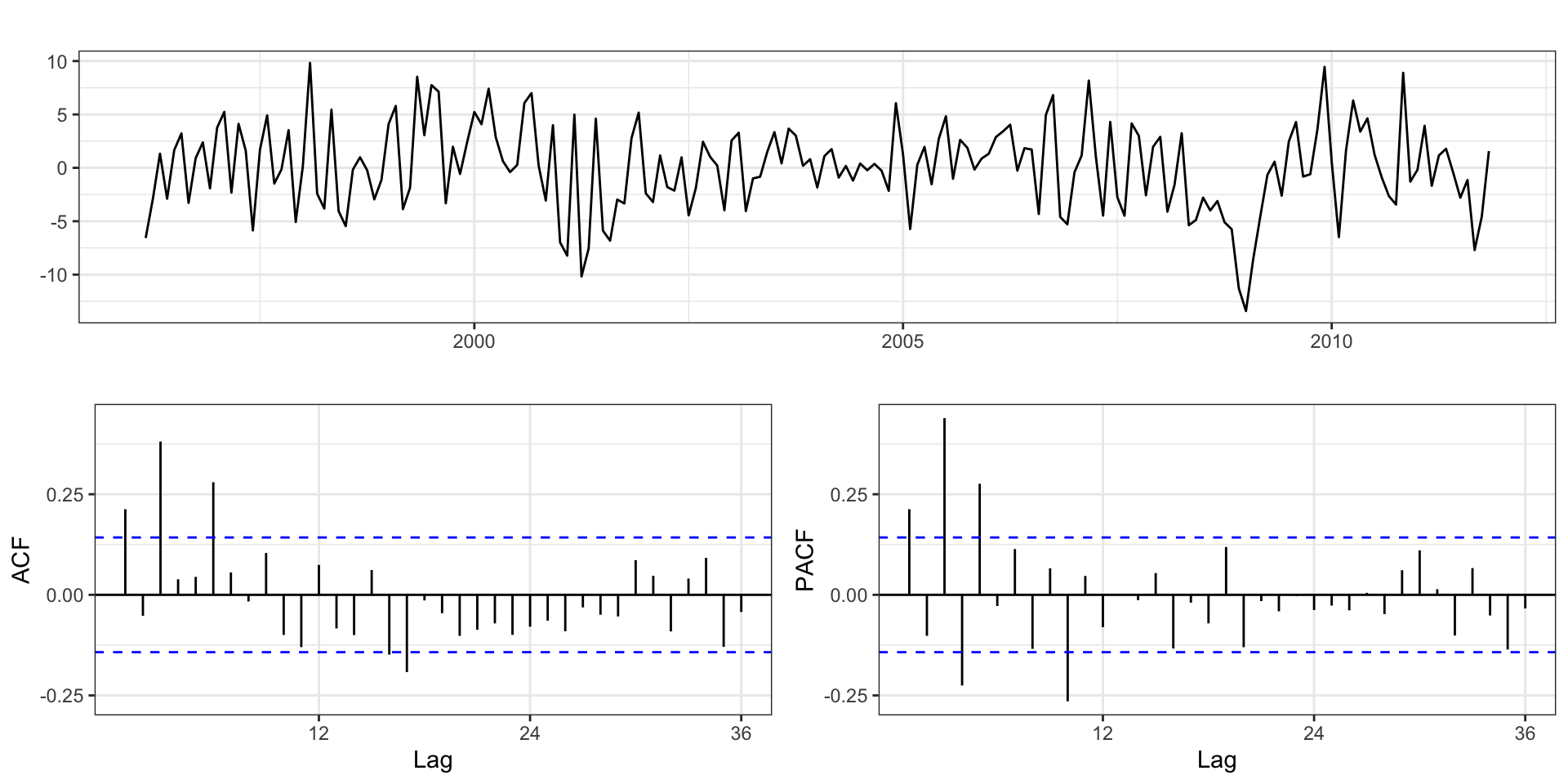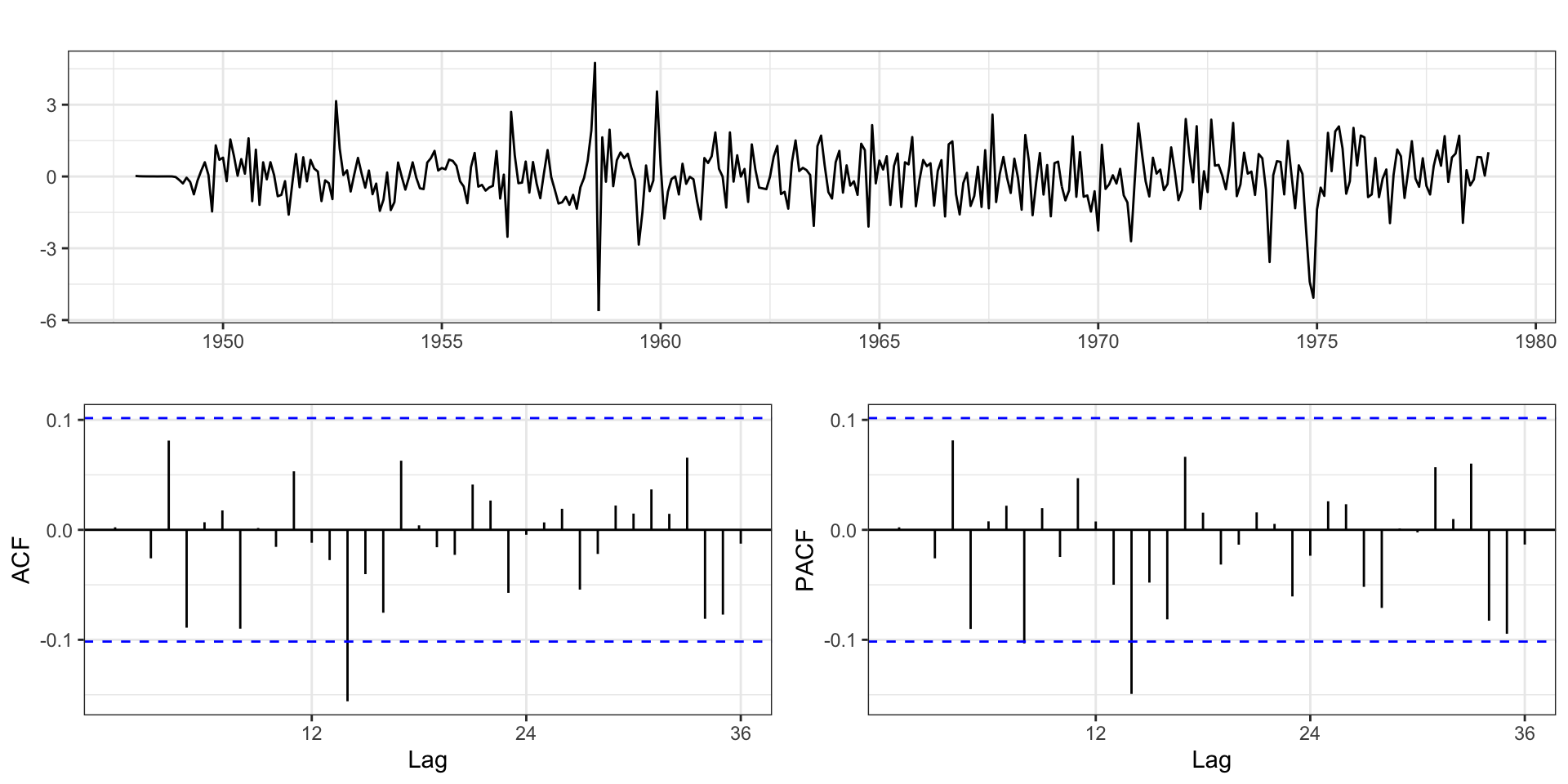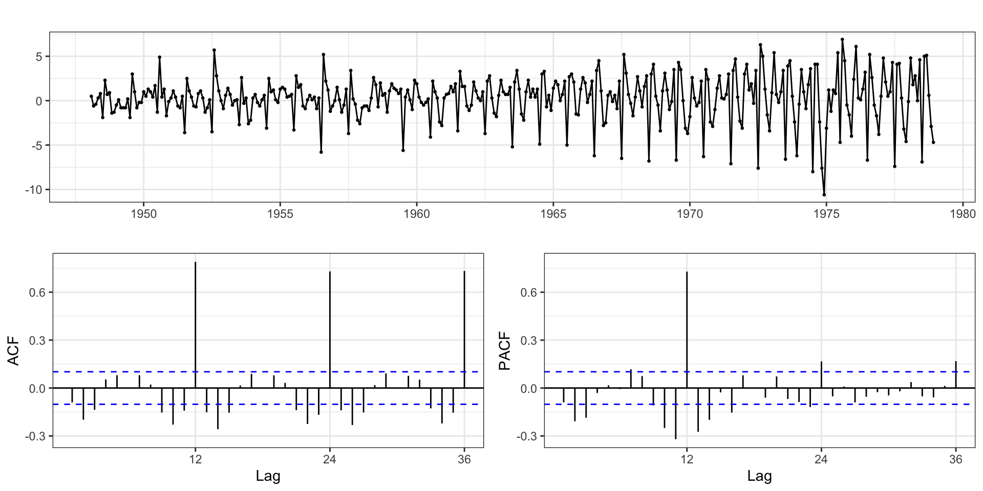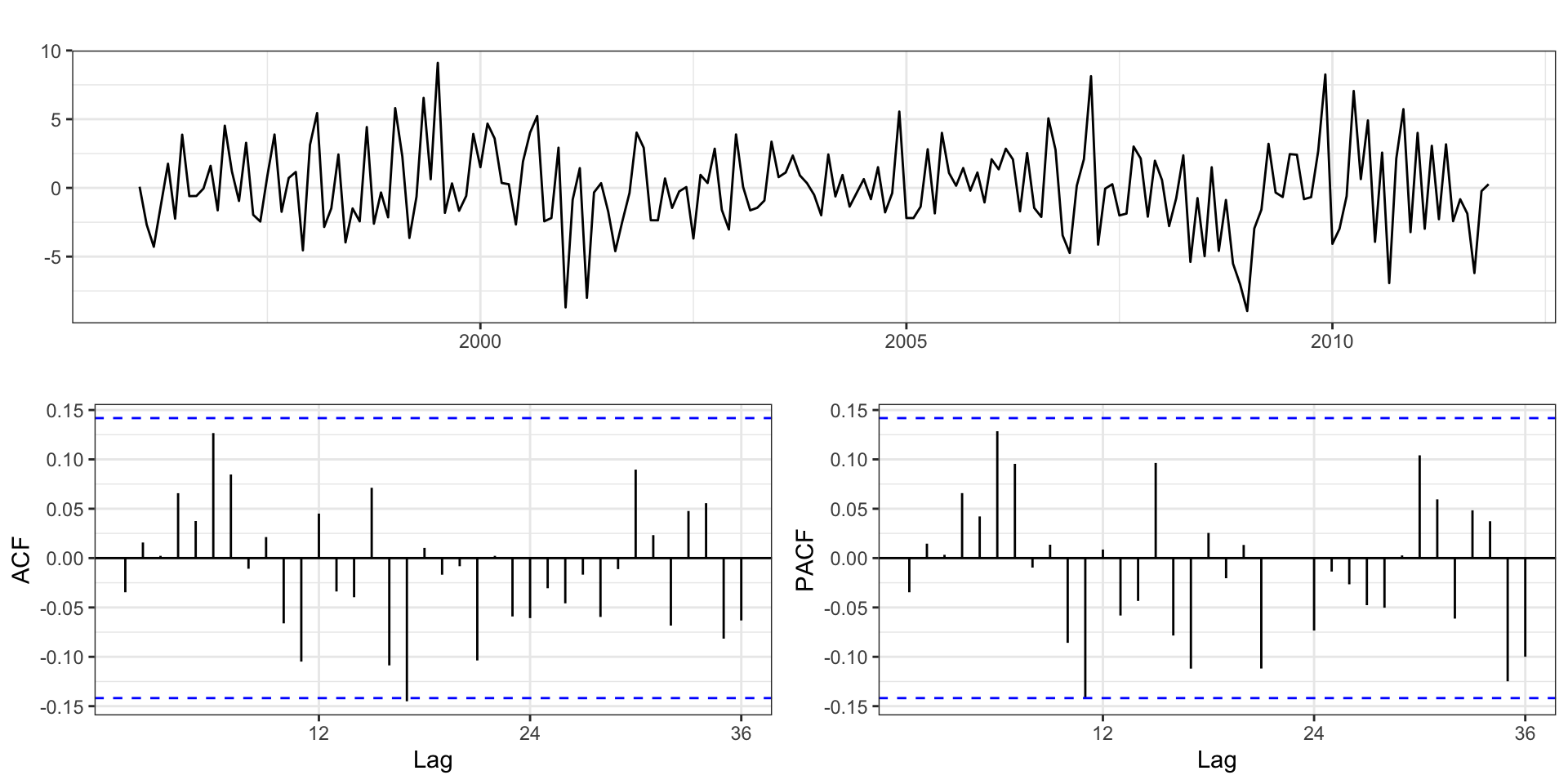 \(\text{ARIMA}(0,0,0) \times (0,1,1)_{12}\):