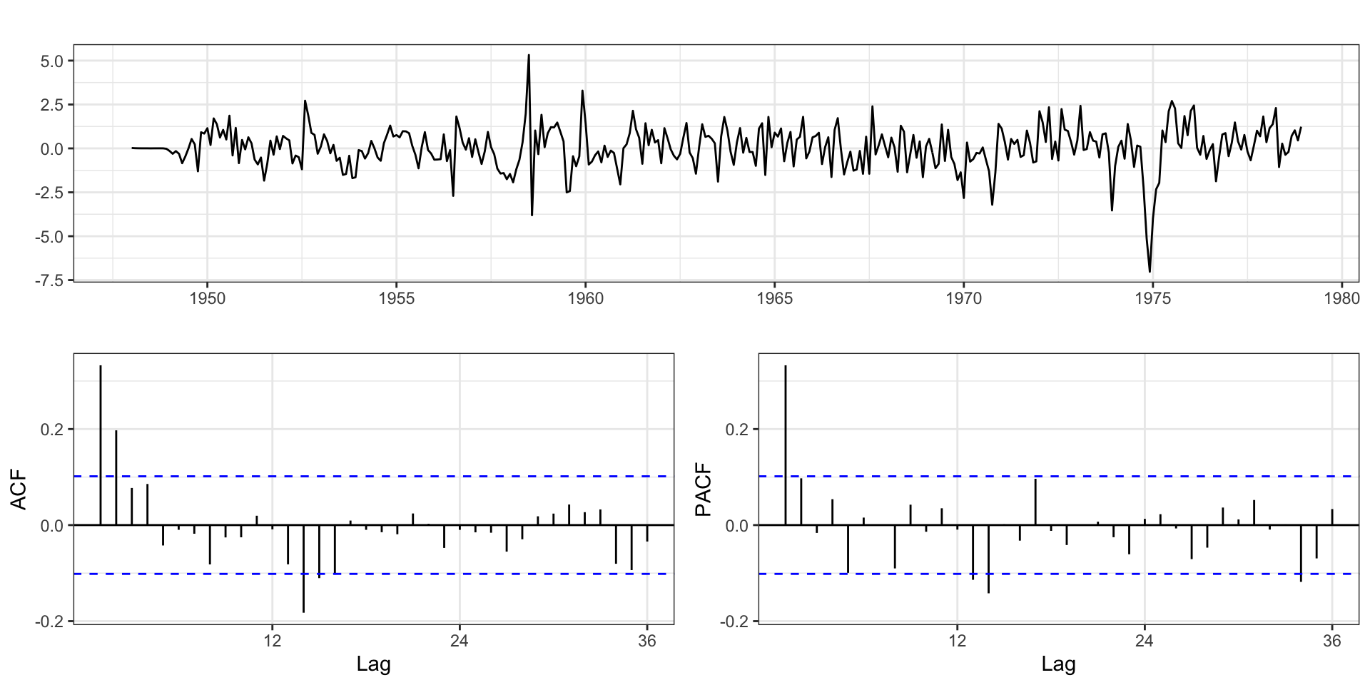 prodn from the astsa packageMonthly Federal Reserve Board Production Index (1948-1978)