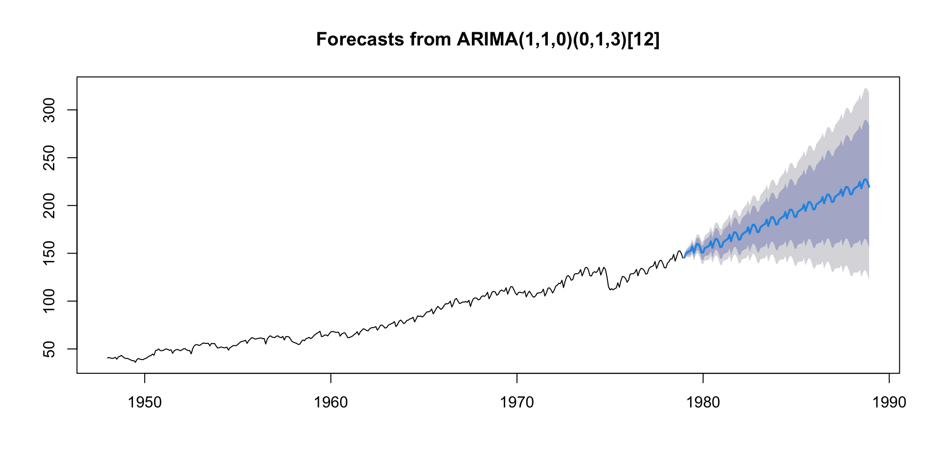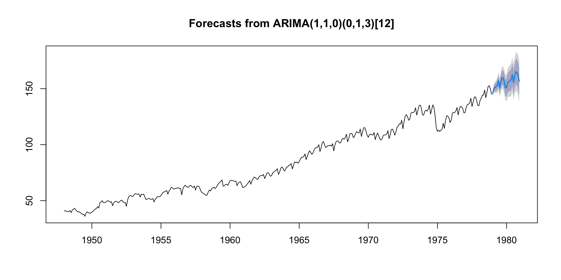 Seasonal \(\text{ARIMA}\,(p,d,q) \times (P,D,Q)_s\): \[ \Phi_P(L^s) \, \phi_p(L) \, \Delta_s^D \, \Delta^d \, y_t = \delta + \Theta_Q(L^s) \, \theta_q(L) \, w_t\] . . .