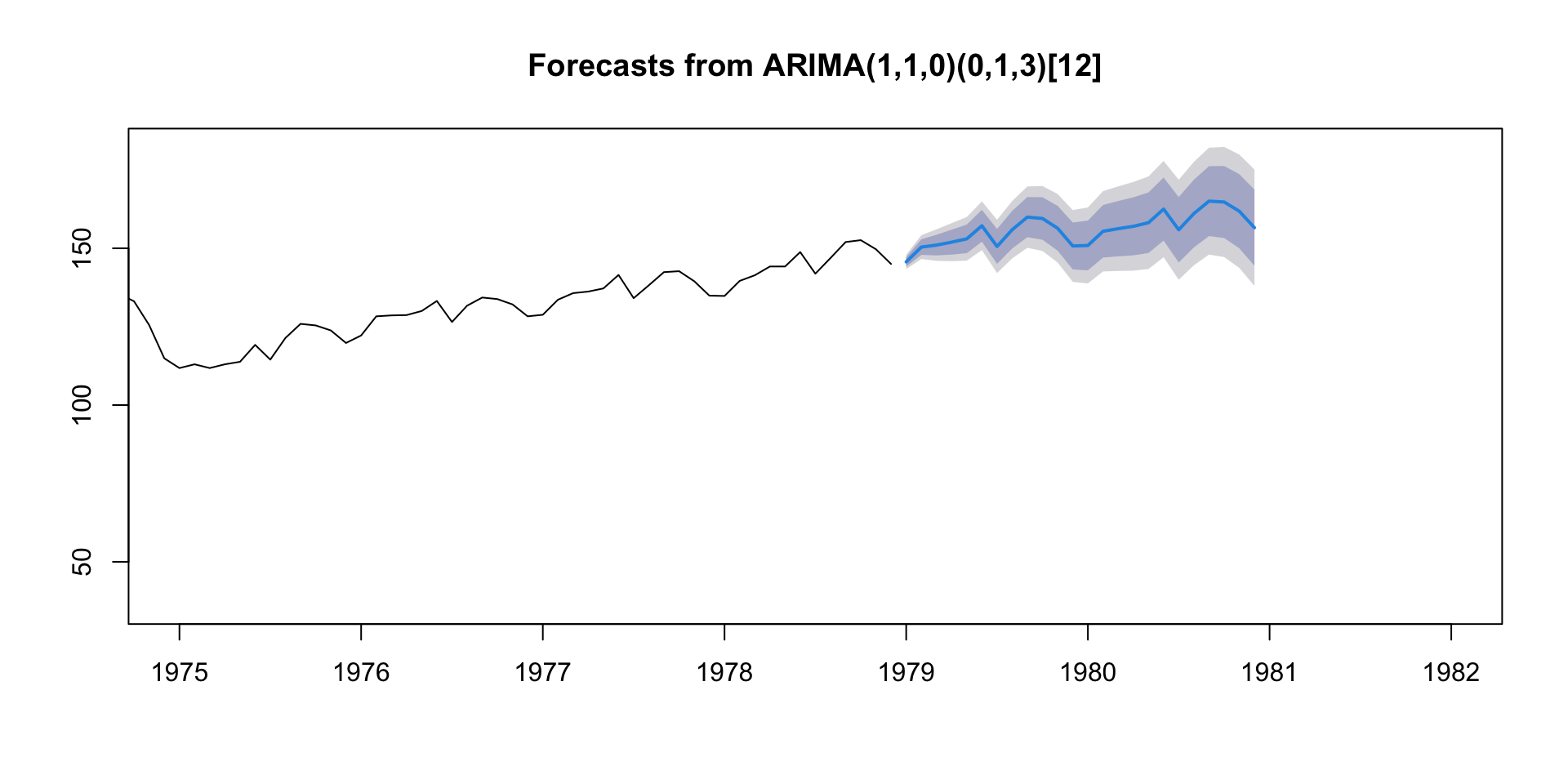 \(\text{ARIMA}(3,0,0) \times (0,1,1)_{12}\)