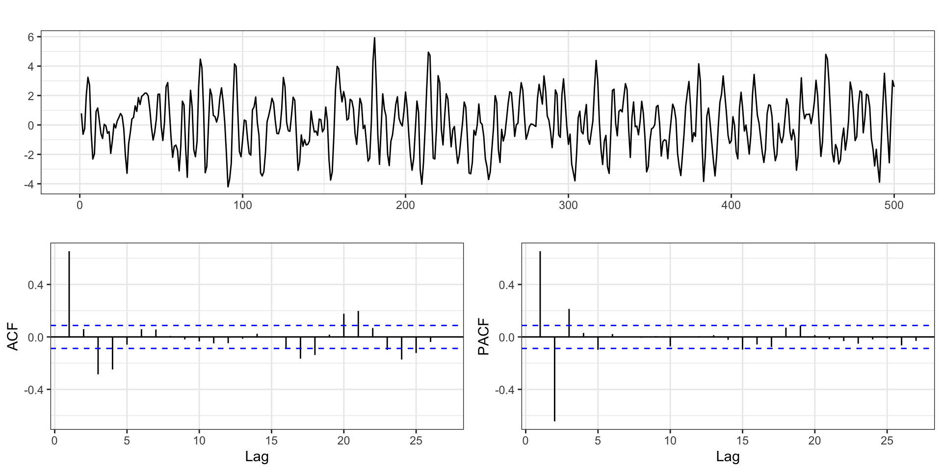 lag(y, 2) -0.50025 0.04291 -11.657 < 2e-16 ***