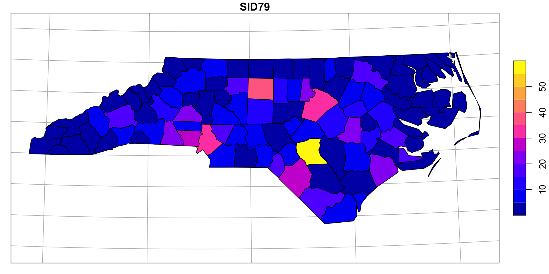 As a side note, the special case where \(\phi=1\) is known as an intrinsic autoregressive (IAR) model and they are popular as an improper prior for spatial random effects. An additional sum constraint is necessary for identifiability \[\sum_{i=1}^n y(s_i) = 0\]