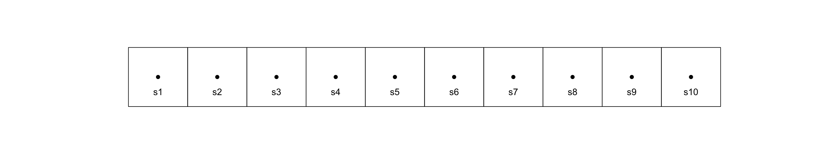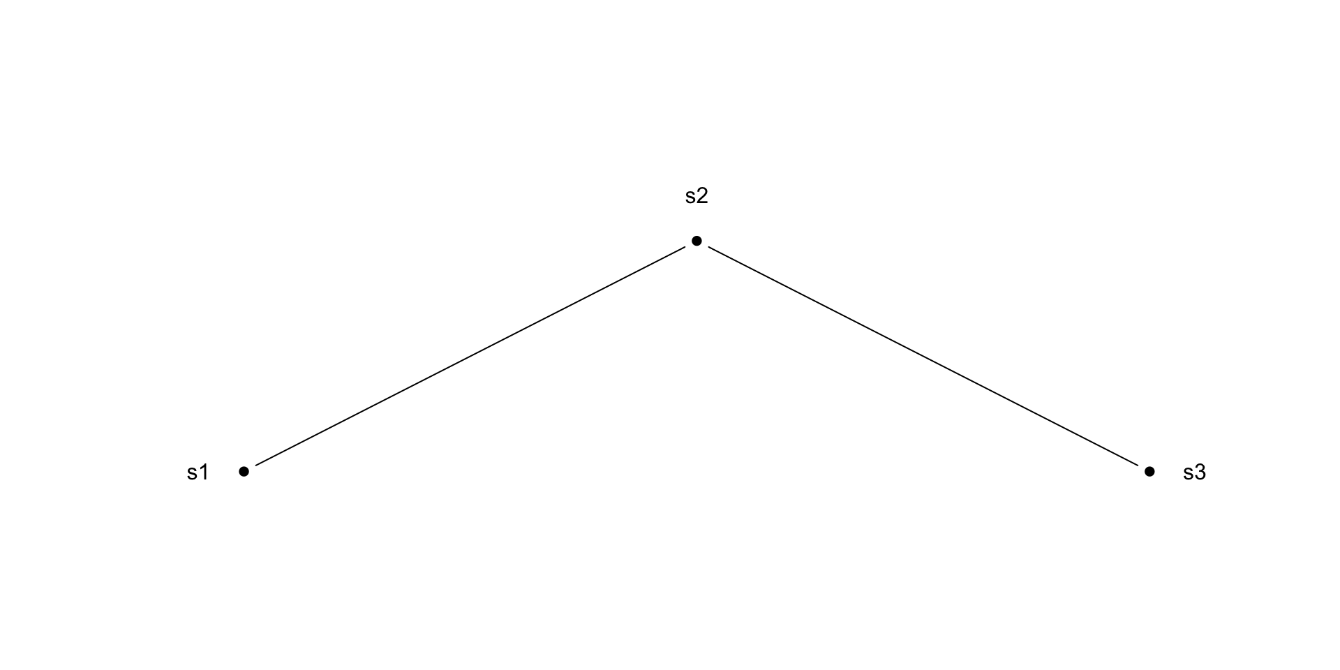 If we define the neighborhood based on “touching” then \(N(s_3) = \{s_2, s_4\}\)
