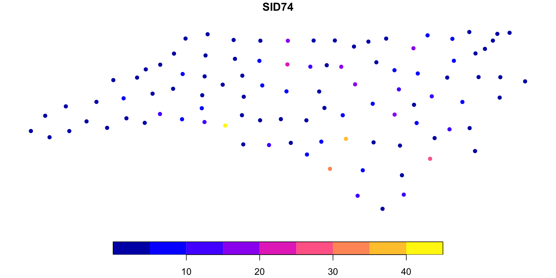 Instead we need to think about things in terms of their neighbors / neighborhoods. We define \(N(s_i)\) to be the set of neighbors of location \(s_i\).