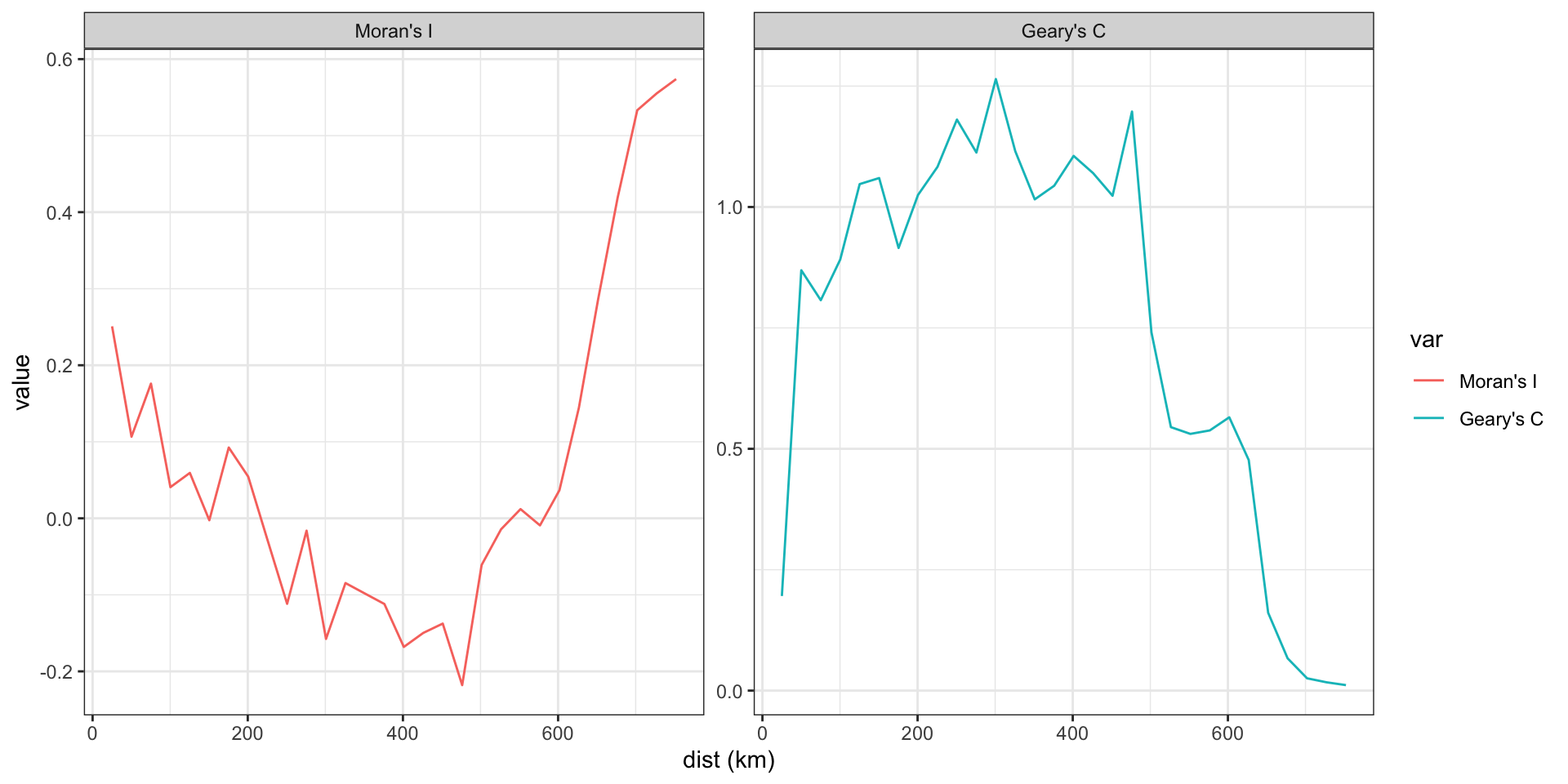 In time we varied \(p\) in the \(AR(p)\) model, in space we adjust the weight matrix.