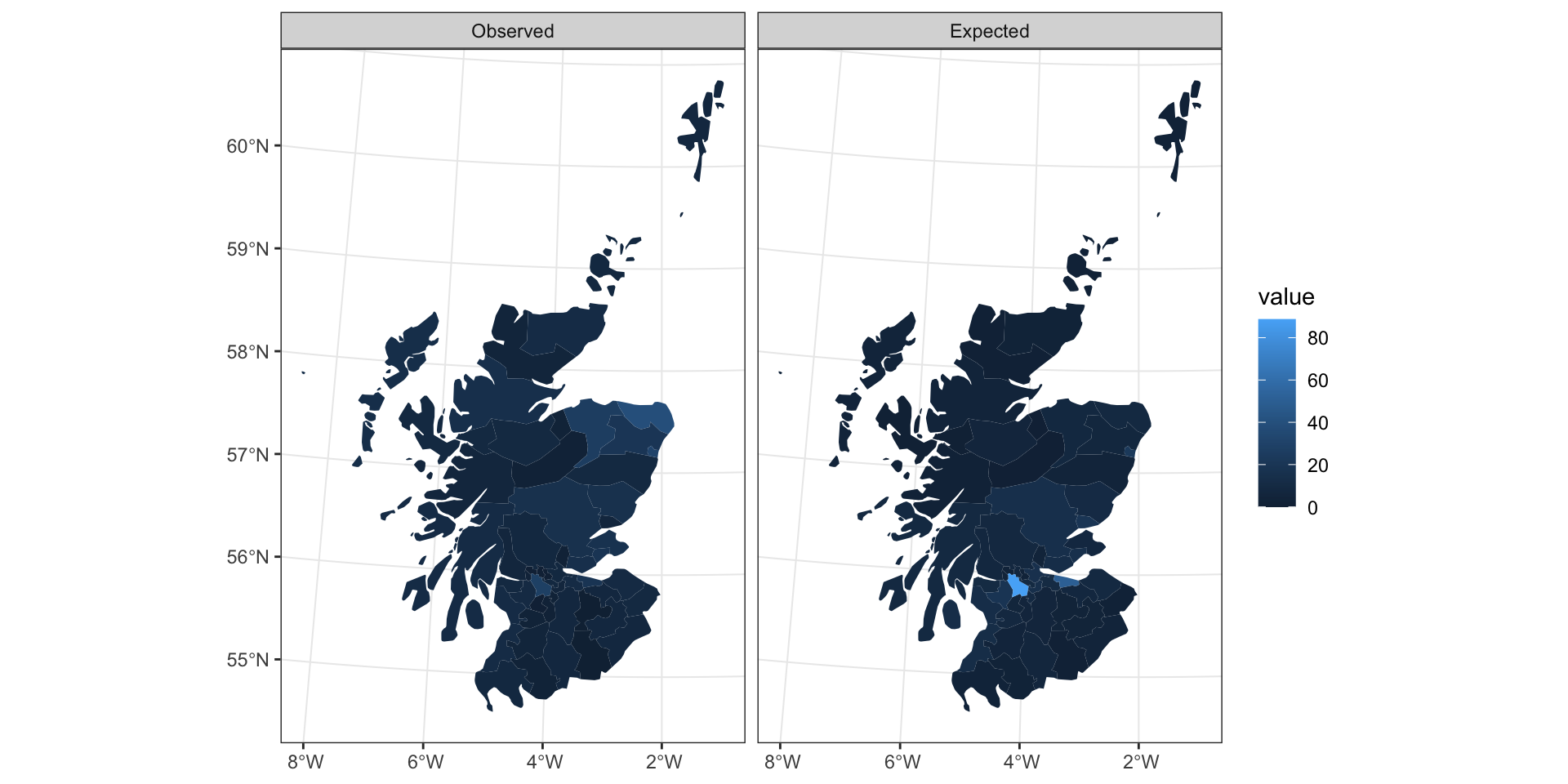 data: car_lip_cancer$Observed - car_lip_cancer$y_pred